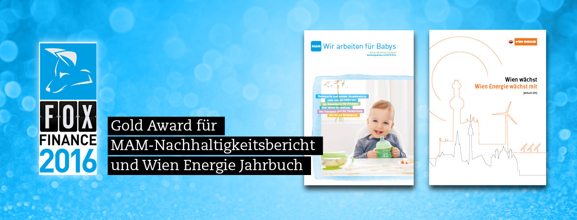 Bei den FOX FINANCE Awards wurde Egger & Lerch für den CSR-Bericht von MAM Babyartikel und für das Wien Energie Jahrbuch 2015 jeweils mit Gold ausgezeichnet.